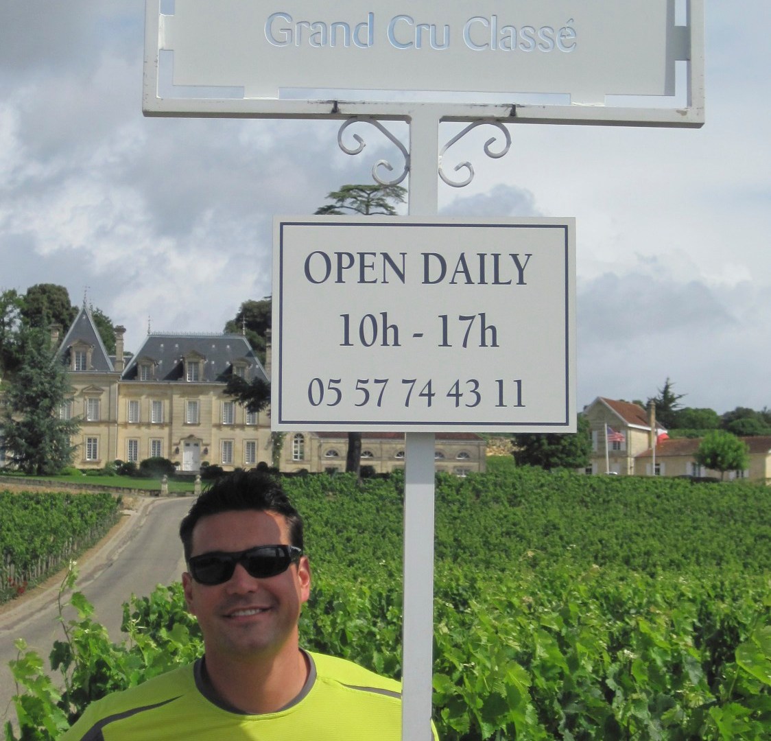 Our intentions were not to wine taste…we really were going to exercise today. We even started our brisk walk through the farm roads of Saint Emilion…the road we turned down had a building in the middle of the vineyards with a big sign showing wine and listing degustation (wine tasting). We only went in to see what the hours were so we could come back after our workout, but it started pouring rain while we were inside. We had two options at this point…1) Stay indoors, wine taste and learn about wine or 2) Go out into the pouring rain and get drenched…obviously we went for the first option. We were actually very happy we found this place because we had been looking for the wine we ordered with dinner the first night we were in town. Right in front of us was an entire section full of that label, Aurelius with various vintages. We found out…it actually is a cooperative wine but a special one….usually cooperative wine use grapes from all different farmers to make the wine. With this particular label…they actually farm the grapes themselves on each of these farmers properties and then take the grapes and make the wine.
