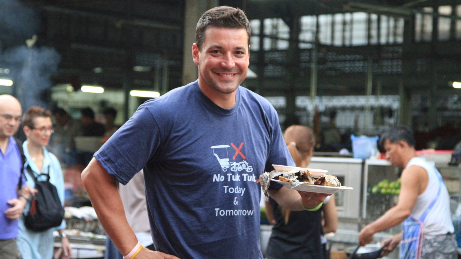 We pulled into a small street crammed with vendors and saw people exchanging money for street food, one street over was our hotel; Silom City Hotel ( www.silomcityhotel.com ). After throwing our stuff in the room, we went exploring the busy city streets. It had that big city feel with tons of traffic including tuk-tuk’s weaving in and out of traffic as well as tons of shopping and enough food to keep us busy all day. After some walking around, we found a small “no frills” place. It had basic tables with basic chairs and several pots full of various Thai food simmering behind the counter. There was a small weathered sign up on the wall showing this place was listed #1 on a CNN list of 50 best foods in the world. We of course ordered the best dish, Pork Mussaman Curry and a Phad Thai…oh and by the way…each dish was 80 Baht which is about $2.60! It was very good…it was sweet but spicy with a coconut undertone-yum.